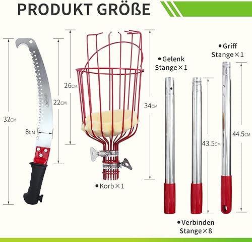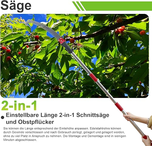 Astsäge 1.6m Mit 4Set Stiel,Teleskopsäge,Einstellbare Länge 3-in-1 Handsäge Teleskopstange,Und Obstpflücke Für Äste Abschneiden Und Obst Grabber-JOVANT (1.6m)