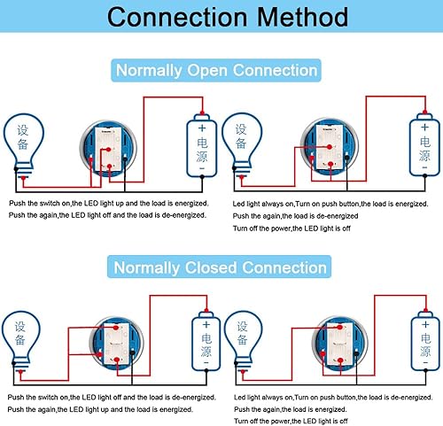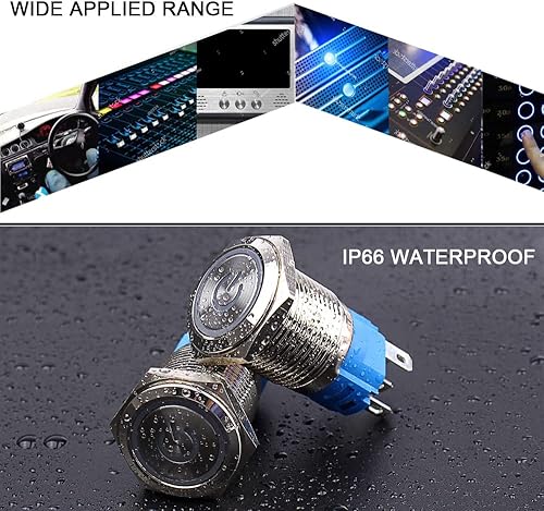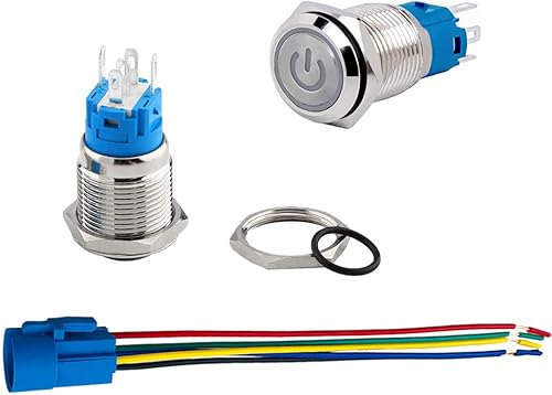 Aiqeer 2 Stück 16 mm Rastend Druckschalter, 12V / 24V 5A Auto Zündung Starter Schalter, IP67 Wasserdichter Edelstahl Druckschalter, mit Vorverdrahteter Steckdose (Weiß LED)
