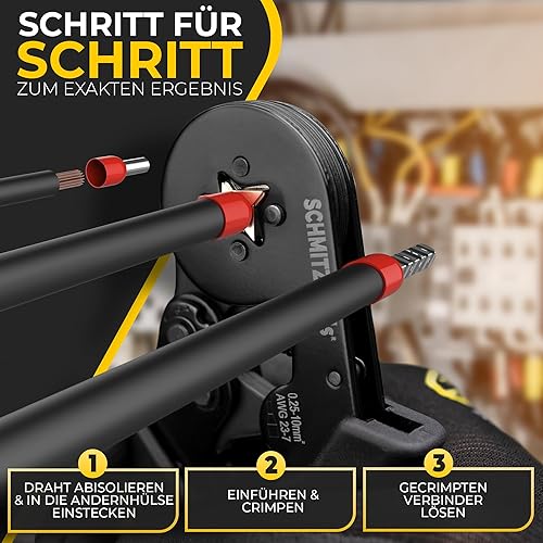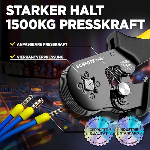 SCHMITZ.Tools® Crimpzange mit 1.800 Aderendhülsen Set - Aderendhülsenzange selbsteinstellend [0,25-10mm²] - Krimpzangenset - Elektrowerkzeug - Presszange