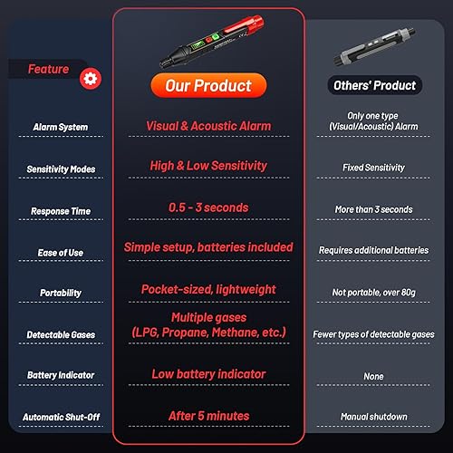 Gasmelder Haus und Gasmelder Wohnmobil – Gaswarner Wohnmobil erkennt Methan, Propan und mehr (inkl. 2 Batterien, Aufbewahrungstasche, deutsche Anleitung) YOJOCK- Rot