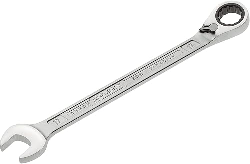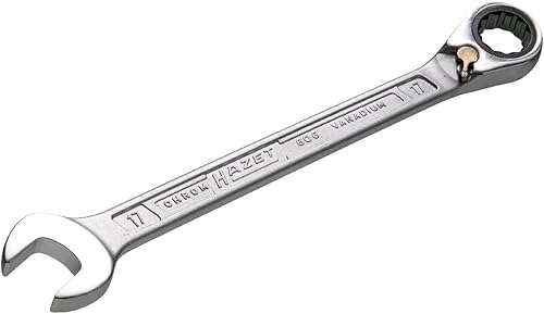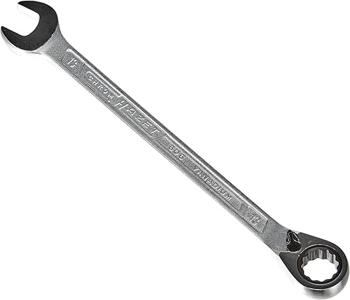 HAZET Knarren-Ring-Maulschlüssel 606-13 I Abtrieb: Außen-Doppel-Sechskant, Schlüsselweite: 13 mm I Betätigungswinkel (5 Grad), Werkzeug für enge Schraubarbeiten an Fahrrad, Auto, usw.