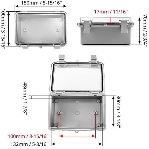QWORK® Industriegehäuse, Wasserdicht IP65 ABS Kunststoff Gehäuse mit PC Transparenter Deckel, Schaltschrank Anschlussdose Abzweigdose Verteilerkasten Leergehäuse 150x100x70mm