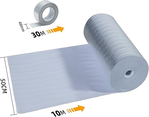 CCLIFE Isolierfolie Thermofolie Alu Dämmfolie 3-4mm Heizkörper Reflexionsfolie für Dächer Fenster Rohre Böden,0.5x20m-10㎡