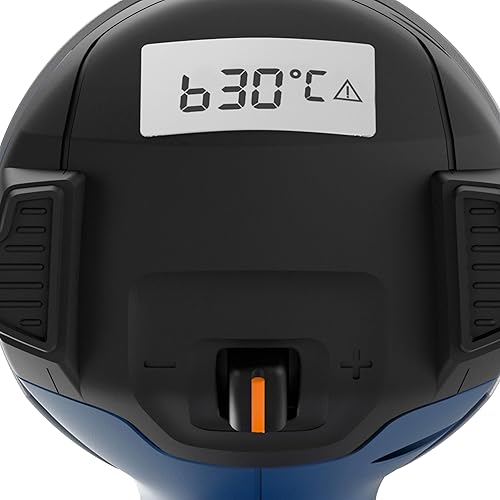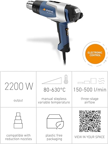 Steinel Heißluftpistole HL 2020 E im Koffer, Inkl. 9mm Reduzierdüse, 2200 W Heißluftfön, LCD-Display, 80°-630°C, Blau