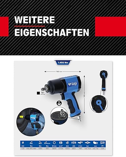 BRILLIANT TOOLS Schlagschrauber Druckluft 1/2' BT160100 1.450 Nm I Druckluft Schlagschrauber in 3-Stufen einstellbar I Hochleistungs-Doppel-Hammer-Schlagwerk