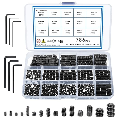 KOXXIAMOQ 595 Stück Metrische Madenschrauben Set, Innensechskant Gewindestifte Schrauben, Sechskantkopf Schrauben Befestigungsteile Kits für Türgriffe, mit 6 Schraubenschlüssel,M3 M4 M5 M6 M8 (595)