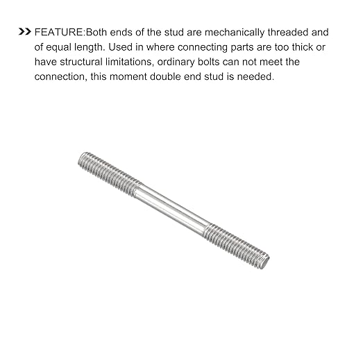 METALLIXITY Doppelseitige Stiftschrauben (M6-Gewinde 65 mm Länge) 10 Stück, 304 Edelstahl-Doppelgewindestangenbolzen – für die Hauswartung