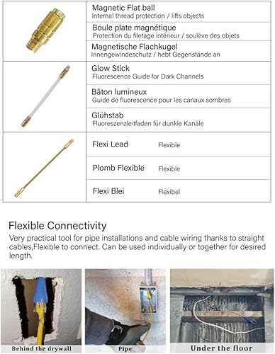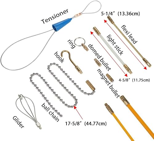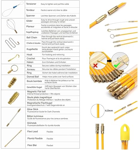 QZATACAEN Kabelstangen Fish Tape 32,8 Fuß 10 m Installationskit mit 9 Kabelhandhabungsaufsätzen 10 Stangen x 100 cm …