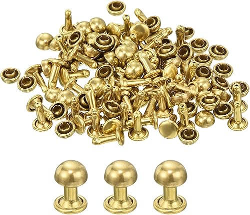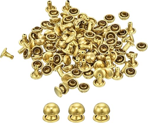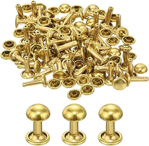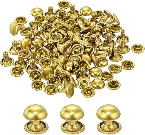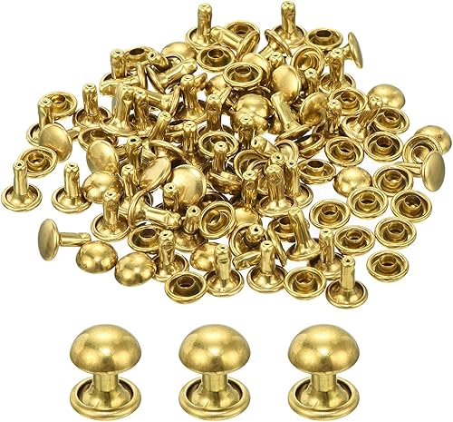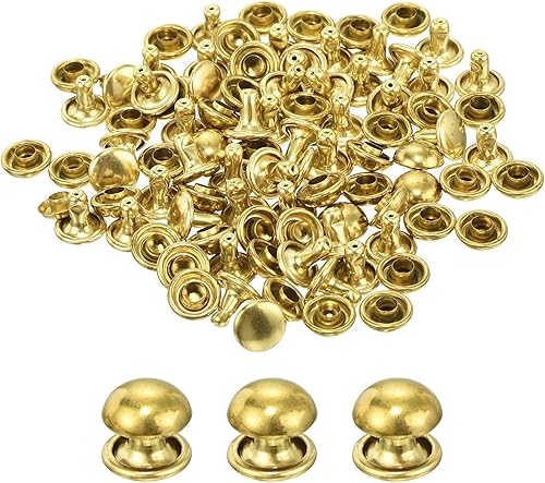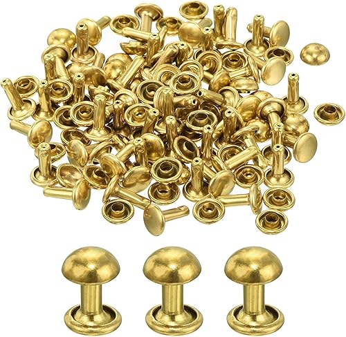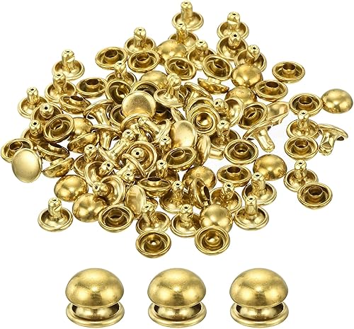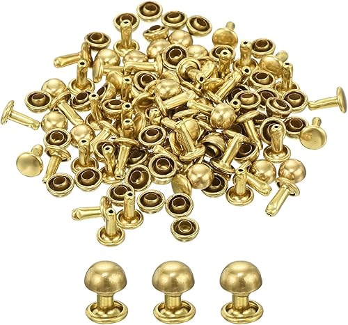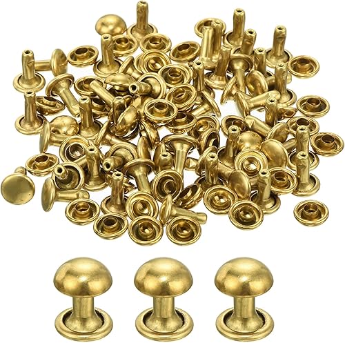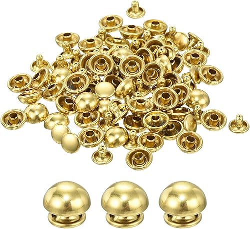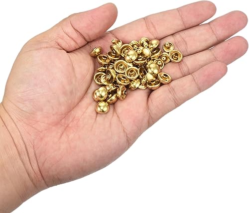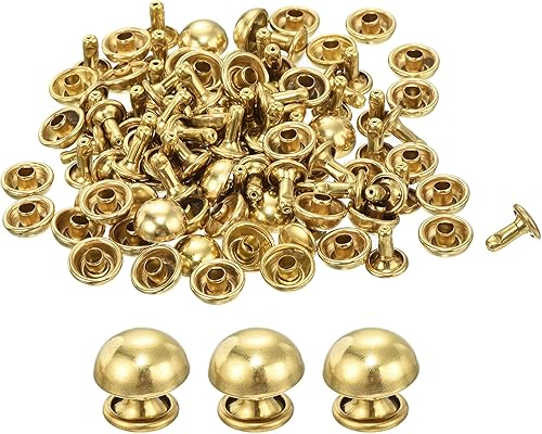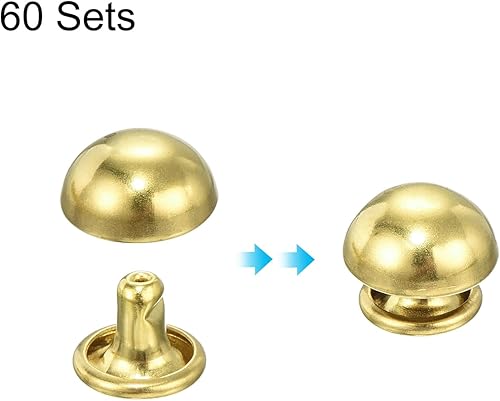 QUARKZMAN 60 Set Runde Nieten, 6x4mm Messing Pilzform Leder Niete, Knopfnieten Befestiger für Ledergürtel Geldbörse Handtasche Lederhandwerk DIY Dekoration (Gold)