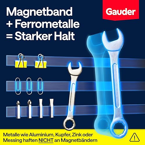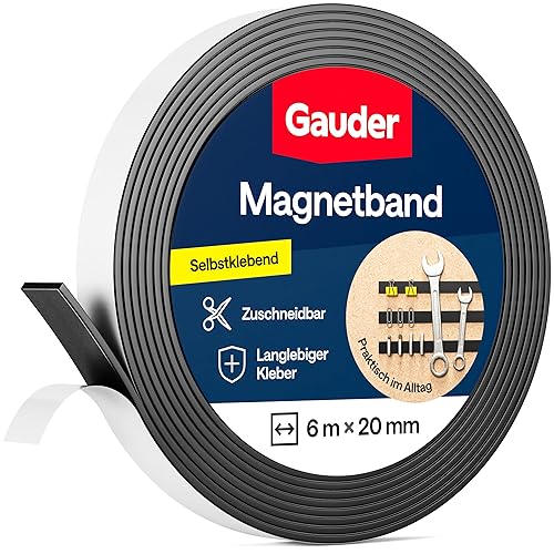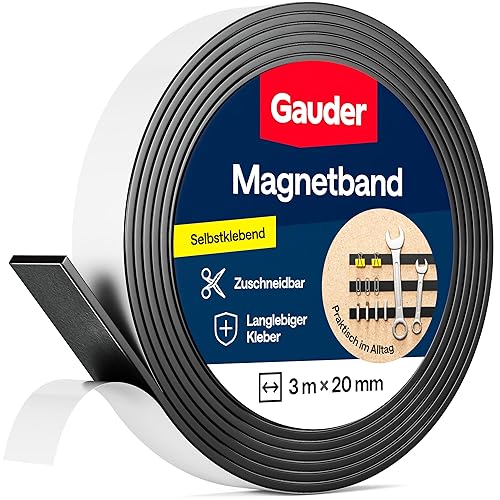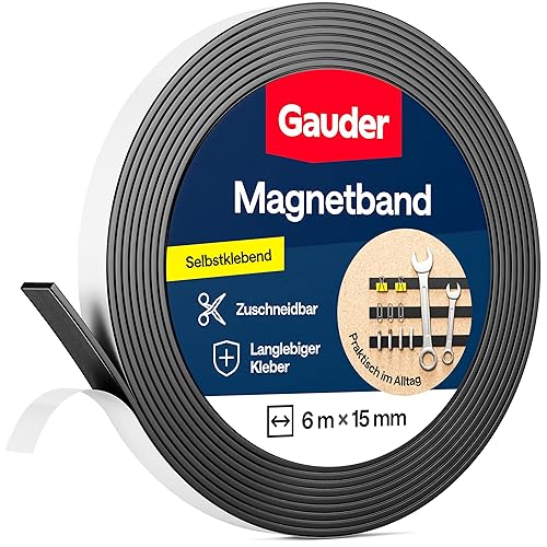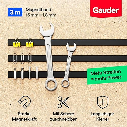 GAUDER Magnetband selbstklebend stark (3 m x 15 mm) | Zuschneidbarer Magnetstreifen mit starkem Kleber | Magnetklebeband für Schule & Haushalt | Magnetklebestreifen mit optimierter Magnetkraft