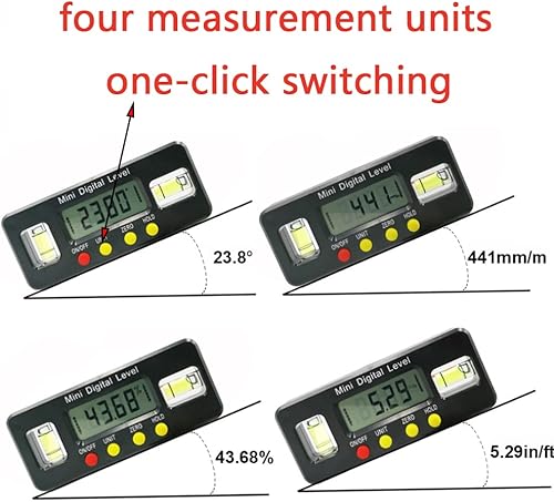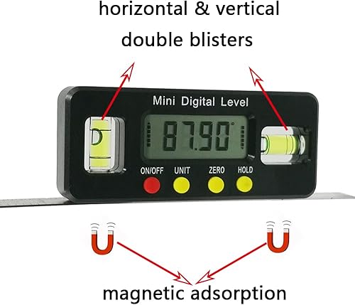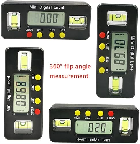 360 Grad Mini-Digital-Präzisionswinkelmesser, digitaler Wasserwaage, magnetisch, Bodenwinkel, Messwerkzeug mit horizontalen und vertikalen Doppelblasen, digitale Wasserwaagenbox, Schwarz