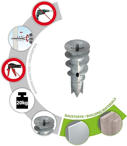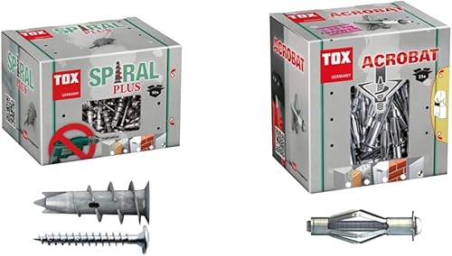TOX Gipskartondübel Spiral Plus 37-4 + Schraube mit PH2-Antrieb, 32 mm, für ein- und zweilagige Gipskartonplatten + Gipsfaserplatten, ohne Vorbohren in Gipskarton, 50 Stück im Karton, 068101041