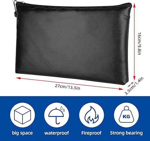 Dokumententasche Tresor Feuerfest Wasserdicht, Feuerfeste Dokumentenbox Geldtasche für A5 Dokumente, Aufbewahrungstasche mit Reißverschluss (27 * 16CM)