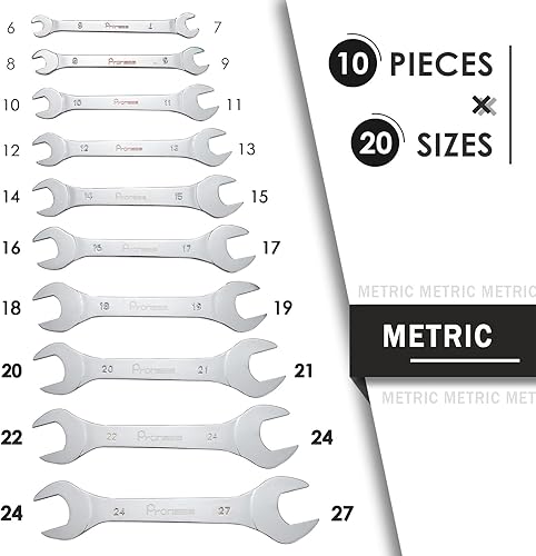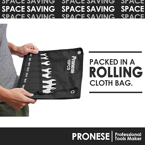 Pronese 10-teiliges superdünnes Maulschlüssel-Set, Karbonstahl mit Hochglanzpolitur, metrisch, inklusive 6 ~ 27 mm, in einer Rolltasche verstaut