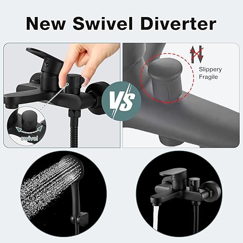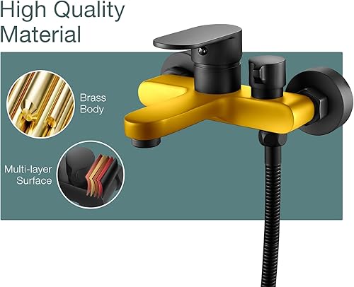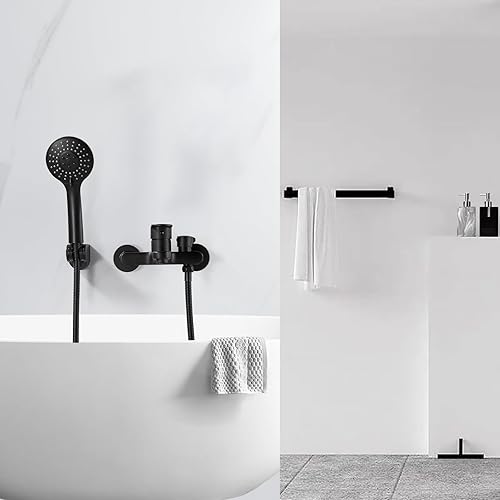 Badewannenarmatur Schwarz Wannenarmatur mit Handbrause Mischbatterie Badewanne mit Brause, Aufputz Wasserhahn Badewanne, 150mm Wandmontage Armatur Badewanne mit Duschkopf 3 Funktionen Schwarz Matt
