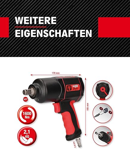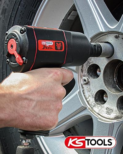 KS Tools THE DEVIL Schlagschrauber Druckluft 515.1200 I Druckluft Schlagschrauber mit praktischem Umschalthebel L/R I Hochleistungs-Doppel-Hammer-Schlagwerk, Schwarz/Rot