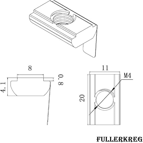 20x M4 Nutenstein 11,0 x4,1 mm für Nut 8K, mit Federblech, Stahl