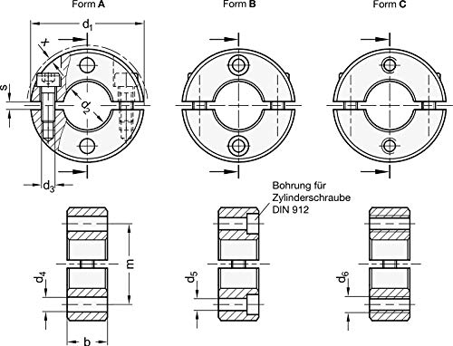 Edelstahl-Stellring, geteilt, Innendurchmesser 25mm / zwei Durchgangsbohrungen