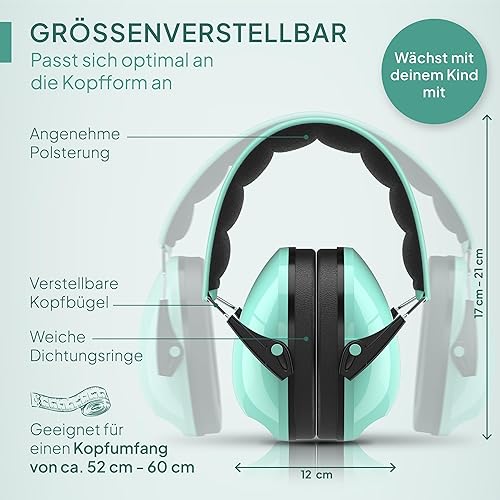 Senner ® KidsPro Earmuff | Gehörschutz für Kinder - Lärmschutz Kopfhörer mit hohen SNR von 28 dB - bis 12 Jahren - mitwachsend - Ohrenschützer Kinder - Mint
