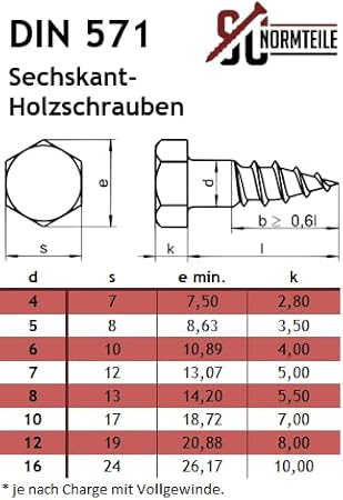 50 Stück Schlüsselschrauben (Sechskant Holzschrauben) - 8x70 mm - DIN 571 - Wiener Schrauben - Edelstahl A2 V2A - SC571 - SC-Normteile
