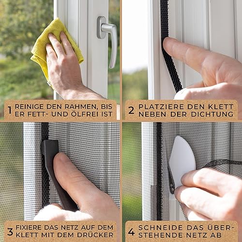 MÜCKENMEISTER® Fliegengitter Fenster (130x450cm, schwarz) aus Glasfaser - Fliegengitter zuschneidbar - Insektenschutz Fenster mit Klebestreifen - Fliegennetz Fenster - Mückennetz Fenster