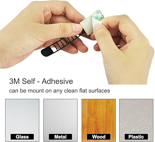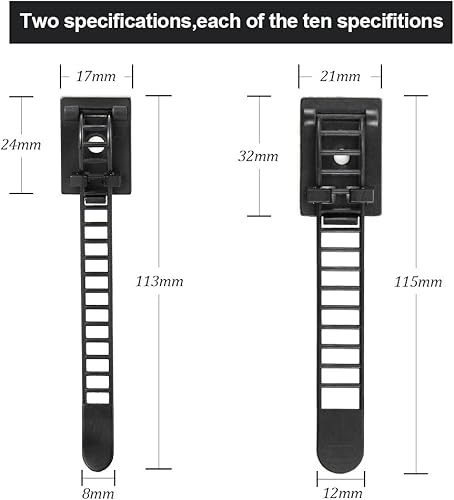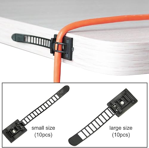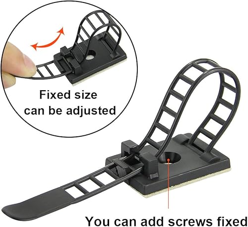 KBNIAN 20 Stück Kabelclips Verstellbare Kabelbinder Selbstklebende Kabelklemme Schwarz Kabelbefestigung Kabel Gurte für Computerkabel, TV-Kabel, USB-Kabel (11,5 * 2,1 cm / 11,3 * 1,8cm)