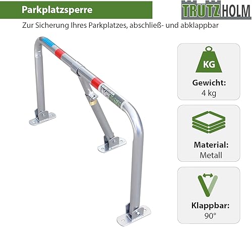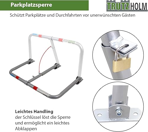 TrutzHolm® Profi Parkplatzsperre Parkplatzbügel Sperrbügel Parkplatzblockierer klappbar umlegbar Parkbügel Poller Vorhängeschloss mit 3 Schlüsseln