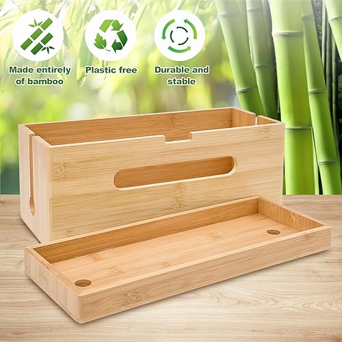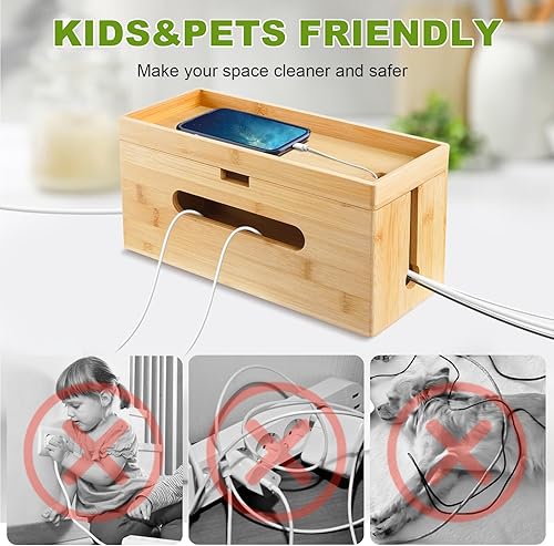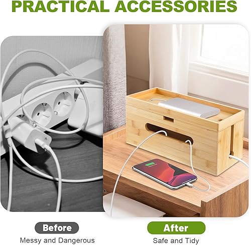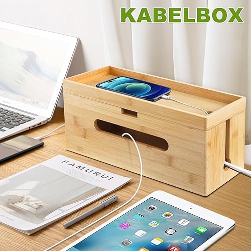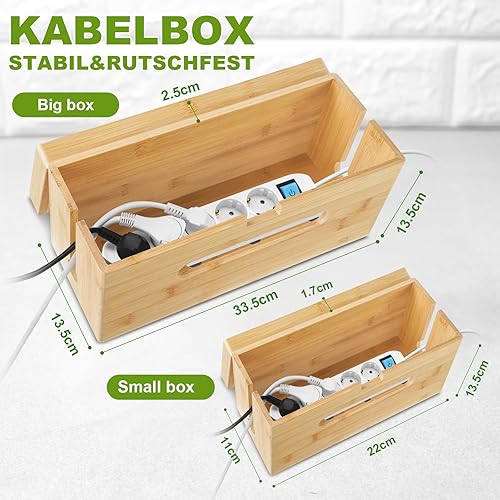 Otauoaea Kabelbox Holz [2er-Set | Groß & Klein] aus nachhaltigem Bambus - Kabelmanagement Box zum Kabelsalat Kabel Verstecken - Steckdosenbox Kabelsammler Kabel Organizer Box
