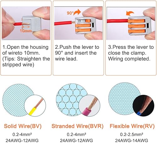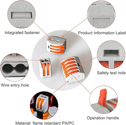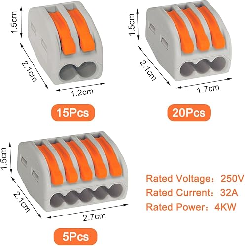 40 Stück Kabelverbinder, Elektrische Anschlussblöcke, 4mm² Leiter Klemme mit Betätigungshebel, Bilateral können frei kombiniert Werden Federdruckhebel für Feste Flexible Kabel