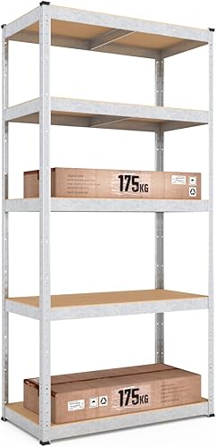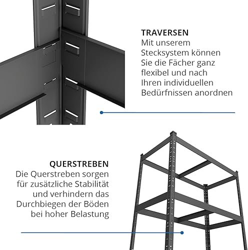 baudim - 200x100x50cm Schwerlastregal/Steckregal mit 5 Böden und 150kg Tragkraft, Metallregal, Garagenregal oder Lagerregal, Kellerregal/Lastenregal, Werkstattregal Metall verzinkt