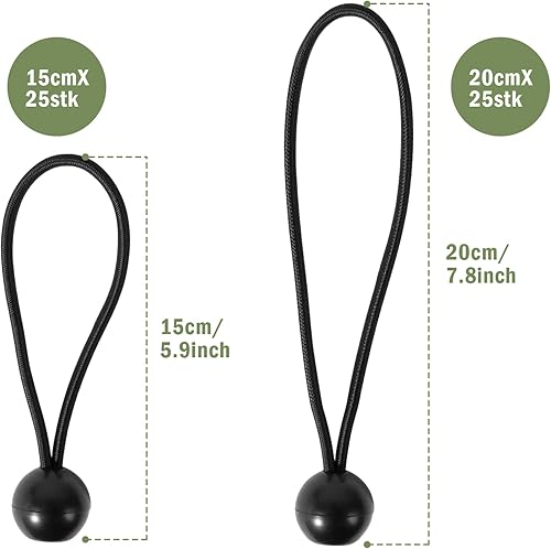 Spanngummis mit Kugel Planenspanner Gummispanner Zeltgummis - 50 Stück Zeltgummi Planengummi Befestigung Expanderschlingen mit Kunststoff-Kugel, Schwarz Zeltspanner für Planen Zelt Banner