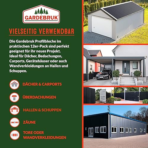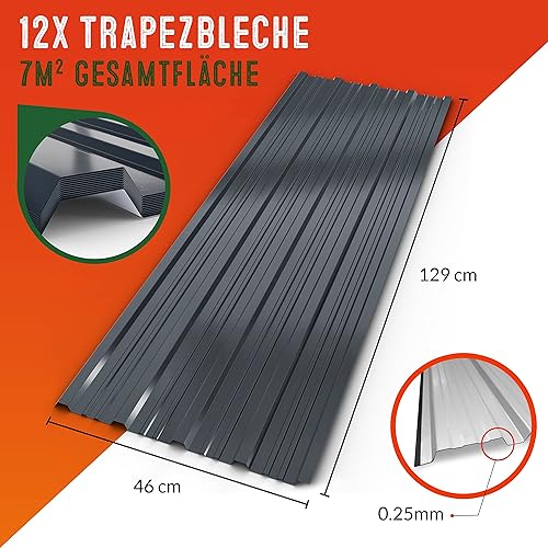 GARDEBRUK® 12x Trapezblech 129x46cm = 7m² Verzinkt Rostresistent Wetterfest Profilblech Dachblech Wellblech Dachplatten Gerätehaus Carport Anthrazit