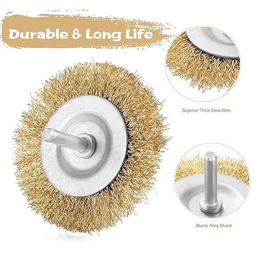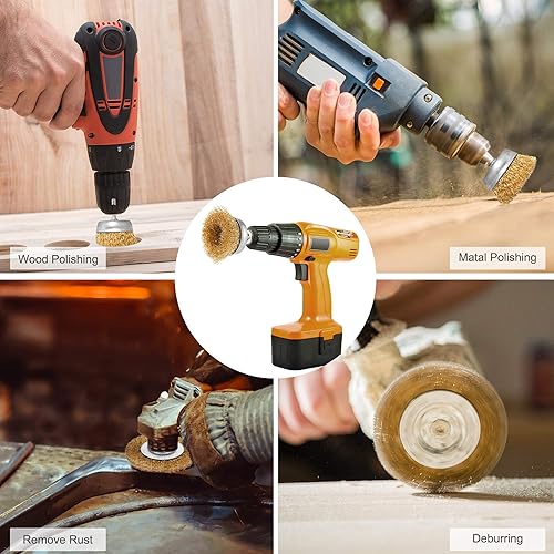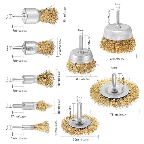 9-teilig Drahtbürste Bohrmaschine Metall Satz,Messingbürste Bürstenaufsatz,Scheiben Topfbürste Stahlbürste Rostentferner mit Schaft 6 mm