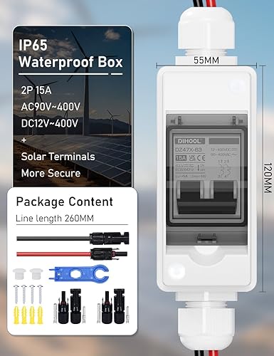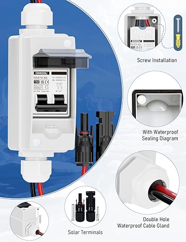 DIHOOL DC trennschalter PV anlage Leitungsschutzschalter 30A 2 polig 30A Mit Solarstecker Kabel IP65 Wasserdicht Gehäuse Für balkonkraftwerk batterie (30A,DC1000V)