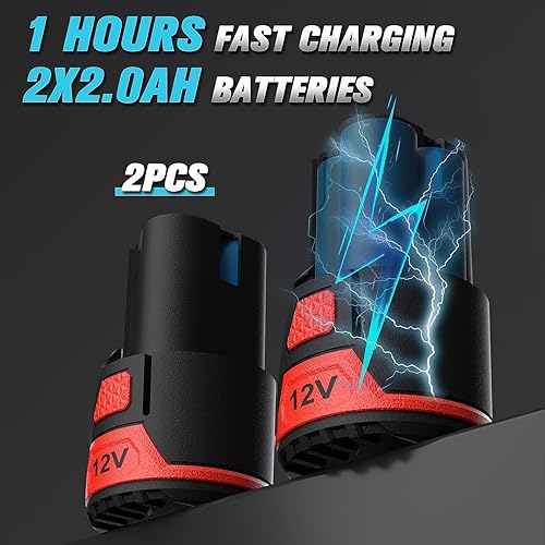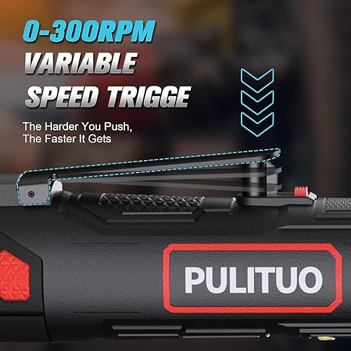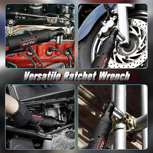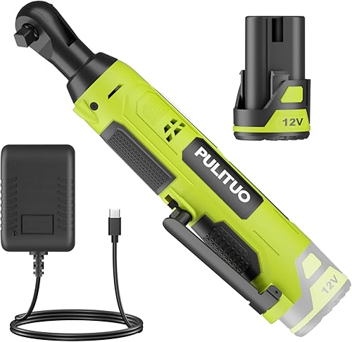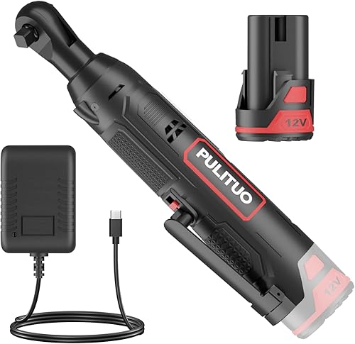 PULITUO Elektrische Ratschenschlüssel Set, 12V Akku Ratschenschlüssel 3/8' mit 2pcs 2000mAh Akkus und Ladegerät, 50N.m, 10 Steckdosen und LED-Licht