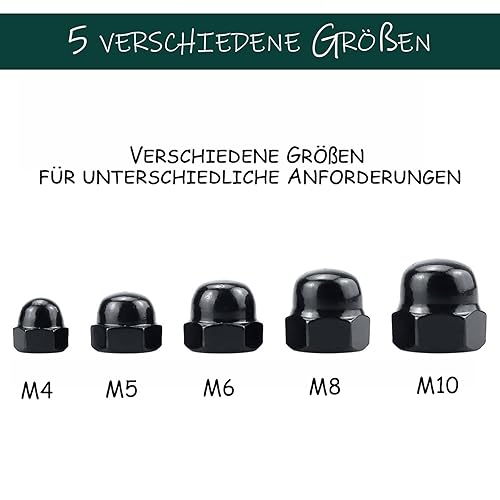 ORTAVA 10 Stück Hutmuttern M8 Edelstahl, Kappenmuttern DIN1587 Hohe Form Edelstahl A2 V2A Sechskant Hutmuttern für Schrauben Gewindestangen & Gewindebolzen (Schwarz)