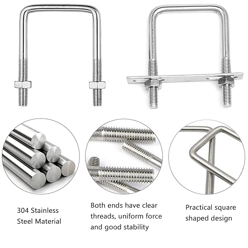 Bebochoi 4 Stück U-Schrauben M8 70x100mm U Bolzen Vierkant U-Bolzen Edelstahl Bügelbolzen Mit Muttern und Rahmenplatte U-Bügel Für Abschleppen Von Autos Und Schiffen Reparatur Von Pipelines