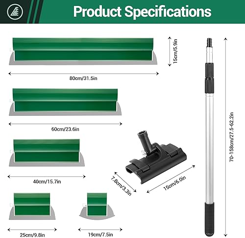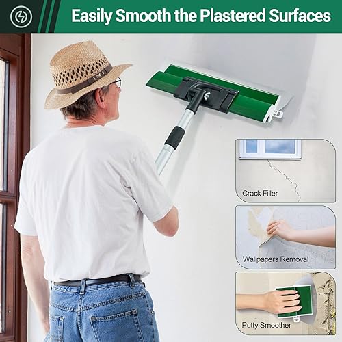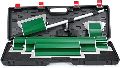 Ricyea Flächenspachtel Set, Spachtel Werkzeug und 0.7 m bis 1.57 m Teleskopstange mit Adapter im Koffer, Glättungsspatel-Kit für professionelle Anwendungen (190mm, 250mm, 400mm, 600mm 800mm) (5-tlg.)