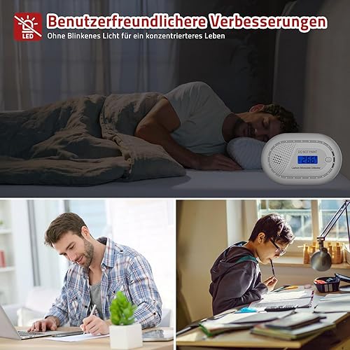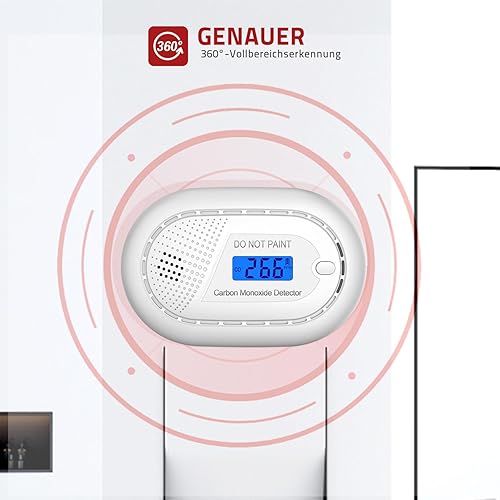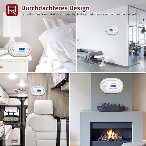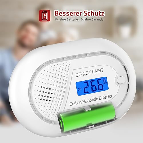 Runidur Kohlenmonoxidmelder Warnmelder Tragbar 10 Jahren Lebensdauern, co Melder Flach ohne Bohren für Kamin Ofen, 1 Stück