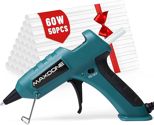 MAXDONE 60W Heißklebepistole, Feuerfest Heissklebepistole mit 50 pcs Heißklebesticks 7mm x 130mm, Klebepistole mit tropffreien Düse für Schule Basteln Heimwerken Kunst schnelle Reparaturen zu Hause