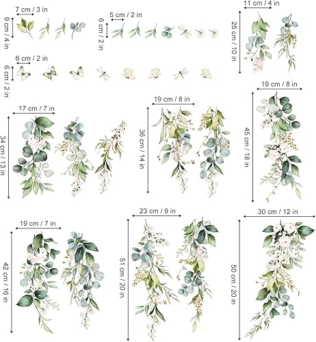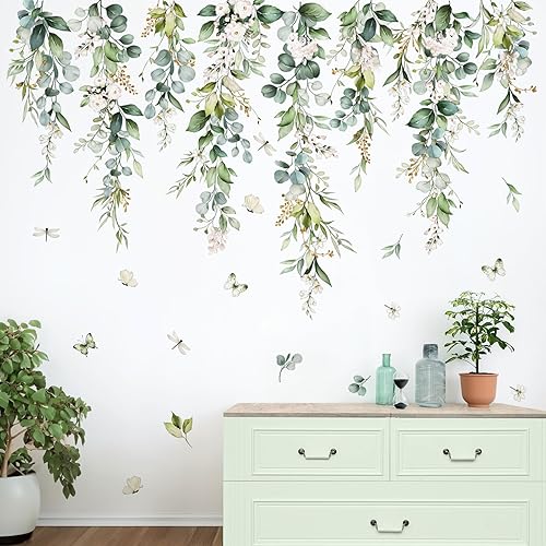 wondever Wandtattoo Hängende Grüne Blätter Wandaufkleber Pflanzen Hängend Rebe Blumen Wandsticker Wanddeko für Schlafzimmer Wohnzimmer Klassenzimmer Büro