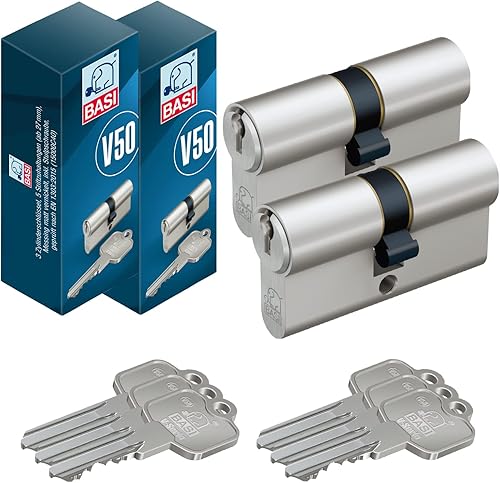 BASI | 2er SET V50 Profil-Doppelzylinder 30/30 mm | Gleichschließend | Profilzylinder | Türzylinder Schließzylinder für Hauseingangstüren Wohneingangstüren | Zylinderschloss mit 3 Schlüsseln