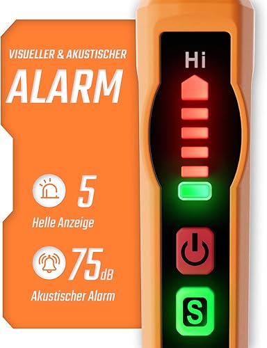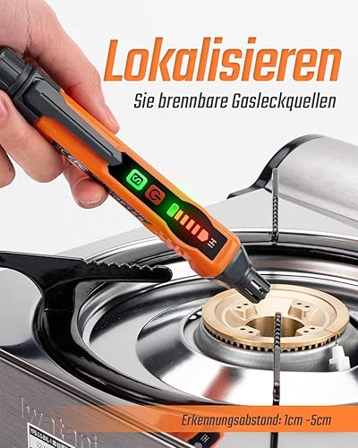 Gasmelder, TopTes PT177 Gaslecksuchgerät mit Akustischem und Visuellem Alarm, Gasdetektor zum Auffinden von Brennbares Gas wie Methan oder Propan für Wohnmobil, Haus (Inklusive Batterie x2) - Orange