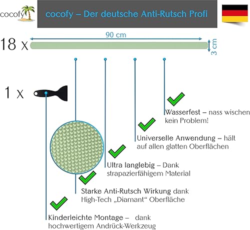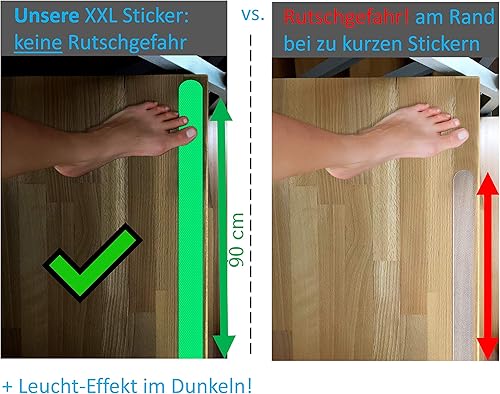 cocofy Fluoreszierende Anti Rutsch Streifen Leuchtend Aufkleber Treppe, nachleuchtendes Klebeband, XXL (75x3 cm), für Treppenstufen innen, Antirutsch Sticker - 18-Pack