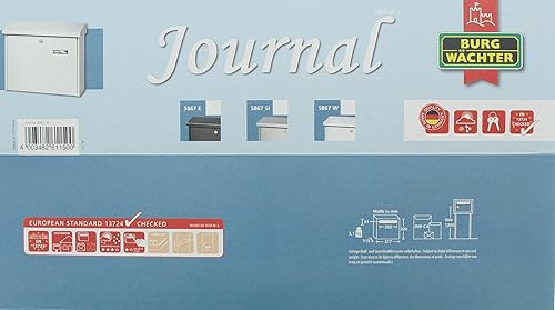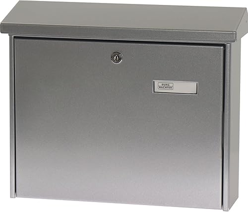 Burg Wächter Briefkasten, Mit Namensschild und Öffnungsstopp, A4 Einwurf-Format, Inkl. 2 Schlüsseln, Verzinkter Stahl, Journal 5867 Si, Silber