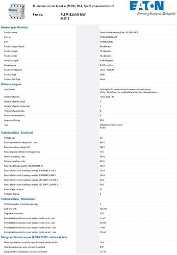 aton PLSM-B20/3N-MW Leitungsschutzschalter 20A 3+N-p B-Charakteristik 242518 (ALT 245046)