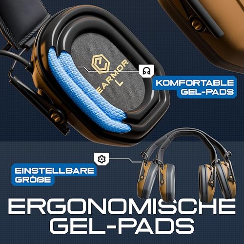 Earmor M300A Elektronische Gehörschutz Schiessen Kapselgehörschutz Ohrenschützer Lärmdämpfung für Jagd Schieß Dämmwert, SNR 29dB Dynamische Geräusch-Regelung, Schwarz