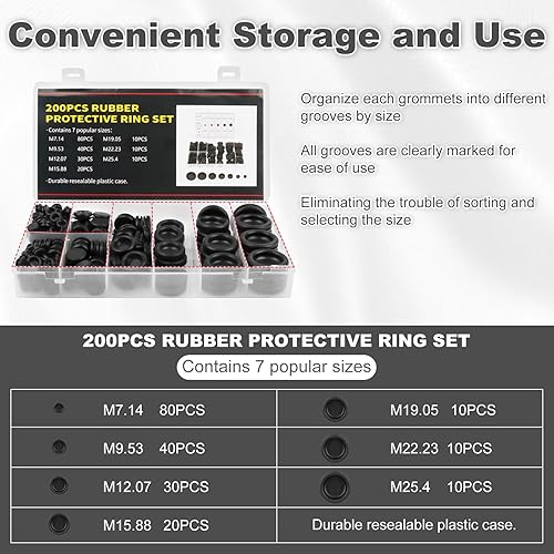 200 Stück Kabeldurchführung Gummi, Gummistopfen Set, Gummi Kabeltüllen Set, Kabeldurchführung Wasserdicht, Gummitülle Kabel zum Schutz von Drähten, Kabelverbindern, 7 Größen