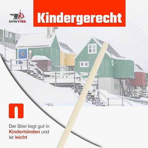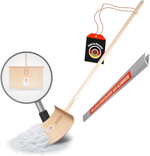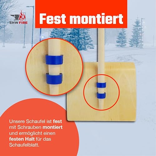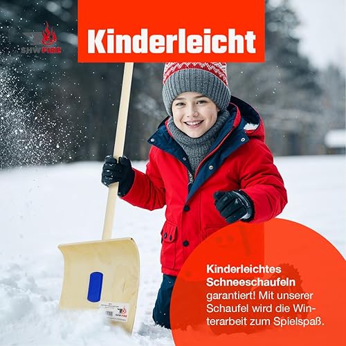 SHW-FIRE | Schneeschieber mit 50cm Schaufel und 150 cm Ovalstiel, Schaufel mit 5-Fach verleimtem Sperrholz mit Aluminium-Schutzkante Premium Schneeschaufel mit Buchenholzstiel | Made in Germany