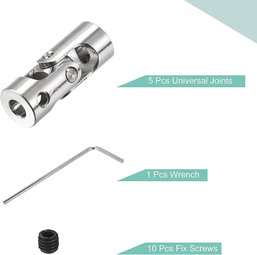 sourcing map 5 Stück Drehbare Kreuzgelenk Wellenkupplung 4mm bis 4mm Innendurchm. L23 x D9 mit Schrauben und Schraubenschlüssel für RC Modell